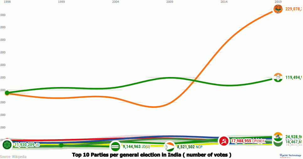 Top 10 parties per general election in india ( Ranking )